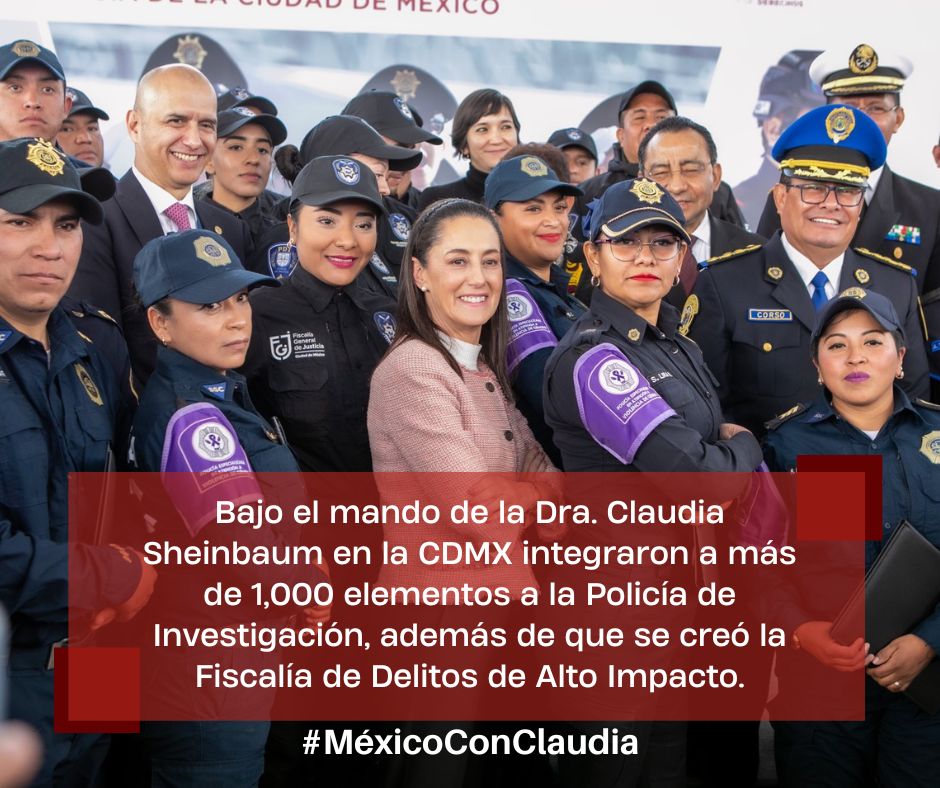 La administración de la doctora Claudia Sheinbaum en la Ciudad de México apoyó un significativo fortalecimiento en materia de seguridad pública en la capital del país, con la integración de más de mil elementos y la creación de la Fiscalía de Delitos de Alto Impacto.