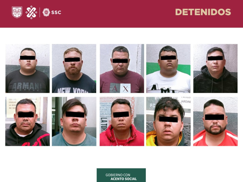 Los detenidos fueron identificados como; José Luis, de 37 años; José Alejandro, de 31 años; Oscar Agustín, de 31 años; David Ángel, de 21 años; Francisco David, de 30 años; Arturo Jair, de 22 años; Arturo, de 28 años; Marcos, de 42 años; Diego Adrián, de 32 años y José Francisco, de 34 años.