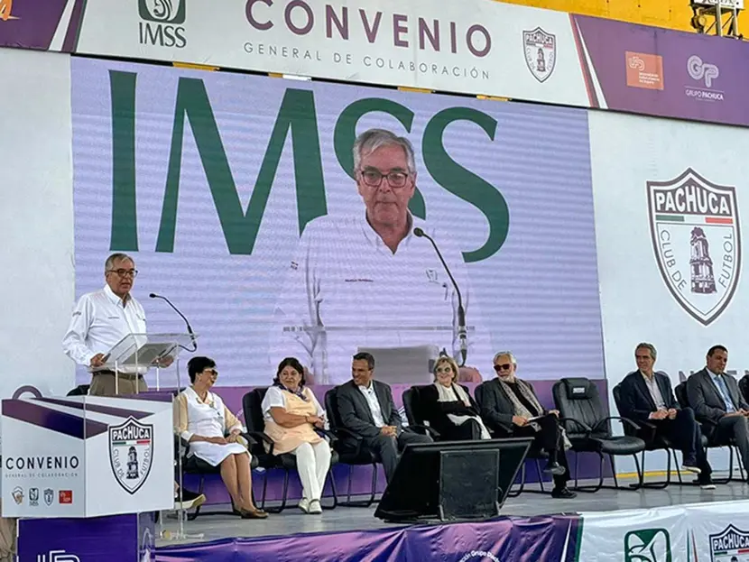 En la firma del convenio participaron el director de Prestaciones Económicas y Sociales del IMSS, Mauricio Hernández Ávila; el presidente del Club Pachuca, Armando Martínez Patiño y el presidente de Grupo Pachuca, Jesús Martínez Patiño, entre otras personalidades.