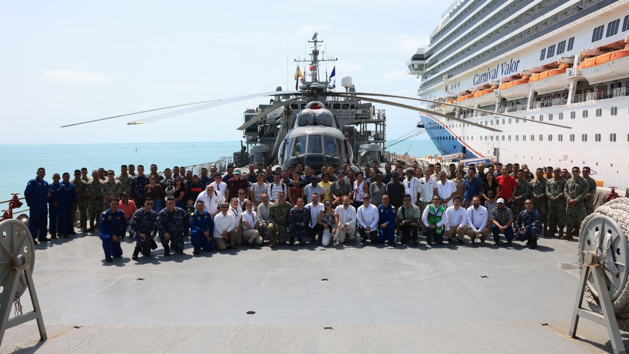 En el buque Isla Holbox, las personas rescatadas fueron recibidas por el capitán de fragata, Jonathan Solano, y la tripulación.