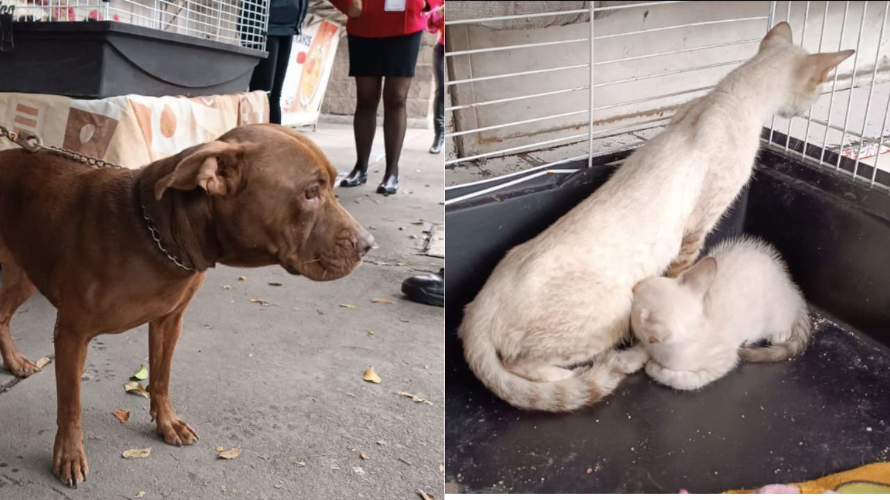 Los oficiales hallaron a los 15 gatitos dentro de tres jaulas, mientras que el perrito de raza pitbull, el cual se encontraba amarrado con una cadena a un puesto de comida, por lo elementos de la Brigada de Vigilancia animal los aseguraron.